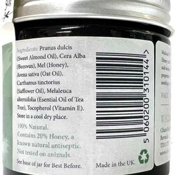 - Propolis obtained from tree resins provides superficial antibacterial and skin repair properties. Essential oil of Tea-Tree provides great anti-inflammatory and antimicrobial properties. Along with great amount of honey and beeswax, this rich-textured ointment is the answer to dry and irritative skins. The addition of vitamin E provides a powerful antioxidant to skin. Â