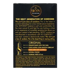 - SKYN Original Non-Latex Lubricated condoms provide a Natural feeling experience with heightened sensitivity, while being safe and suitable for people with latex allergy and latex sensitivity.