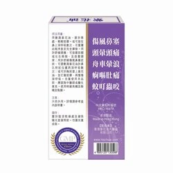 - Indications:ļ¼Relief from headache & dizzinessļ¼Relief from cold & flu, blocked noseļ¼Relief from diarrhea, nausea, vomitingļ¼Relief from abdominal painļ¼Relief from insect & mosquito biteļ¼Relief from travel & motion sicknessCertificate of Registration of pCm:HKC-16478Ā